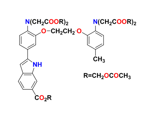 Indo-1是一種細胞生物學常用的鈣離子熒光探針,Indo-1能特異性地結(jié)合Ca2+,同時可發(fā)出熒光,Indo-1是極性大的酸性化合物,無法進入細胞內(nèi),使其成為Indo-1/AM,該變化既增加了酯溶性又消除了負電荷,極大的提高了細胞滲透性。