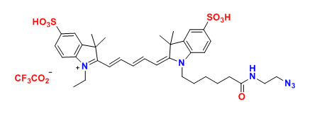 各種花青5(Cy5)染料已用于標記生物分子,用于熒光成像和其他基于熒光的生化分析。它們廣泛用于標記肽,蛋白質(zhì)和寡核苷酸等。Cy5 染料是最常見的紅色熒光團中的一種。這些多功能熒光團可以耐受3-10的pH范圍,用于生物相關pH的各種應用。該染料還具有DMSO耐受性和光穩(wěn)定性,能夠在不損失性能的情況下從儲存轉(zhuǎn)移至分析。水溶性消除了在測定緩沖液中對有機溶劑的需要。我們的Cy5染料經(jīng)過全面QC測試,可確保高水平的發(fā)色團和活性染料含量。單活性染料適用于蛋白質(zhì)和寡核苷酸的靶向,精確標記,雙活性染料更適合于一般標記。建議使用NHS酯染料標記胺基,建議使用馬來酰亞胺染料標記硫醇基團。該Cy5 疊氮化物選擇性地與炔基反應。